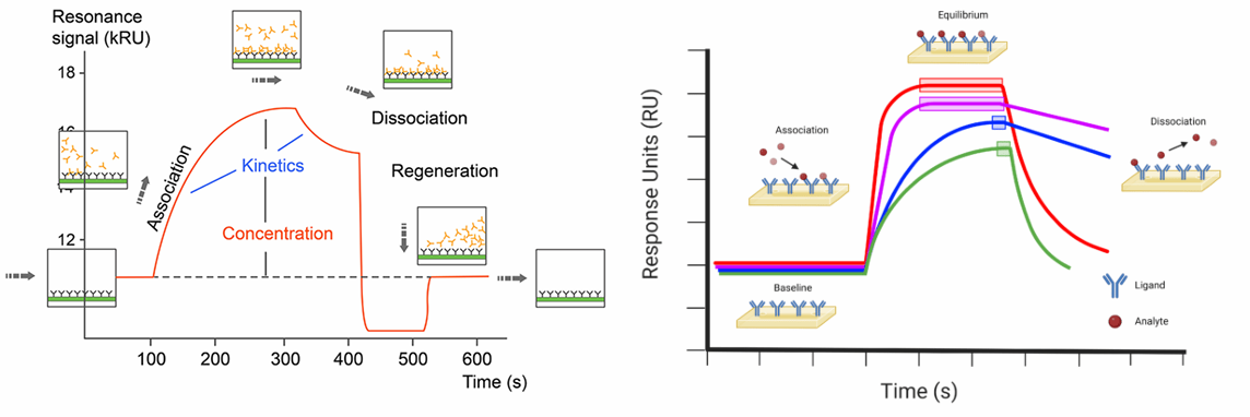 - 表面等离子共振(SPR):通过实时监测分子相互作用,提供高灵敏度的结合动力学参数(如Kd、kon和koff)。适用于多种分子,包括蛋白质、核酸和小分子,能够为药物开发提供关键数据。