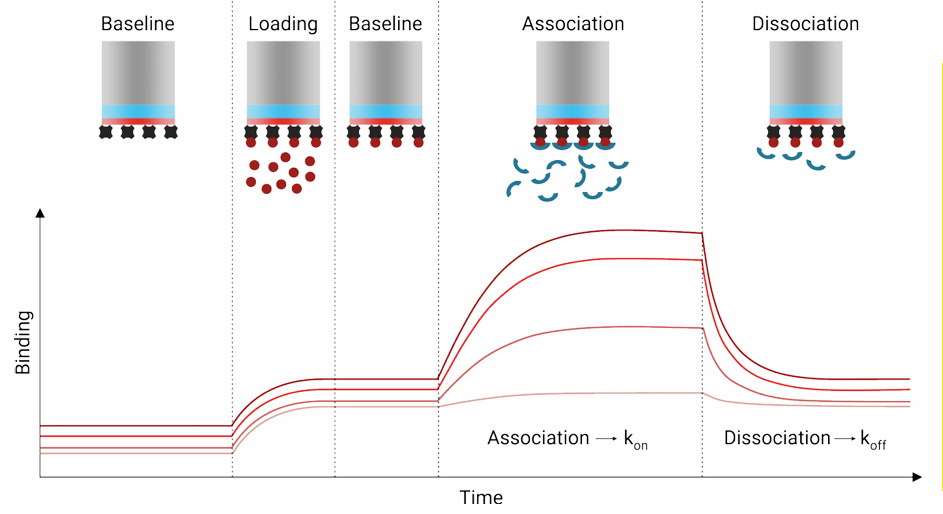 - 生物层干涉(BLI):利用光干涉原理,快速、无标签地测量分子间的相互作用。BLI具有高通量筛选能力和操作简便的优势,适合动态观察结合过程。