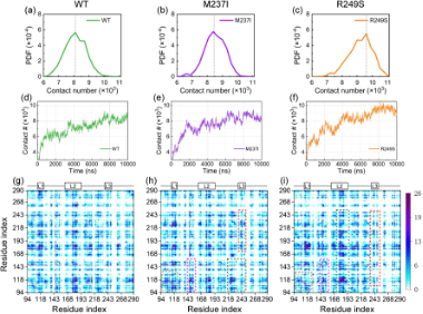 结果表明,M237I和R249S突变通过增强这些多价的蛋白质间相互作用,加速了p53C的LLPS过程。