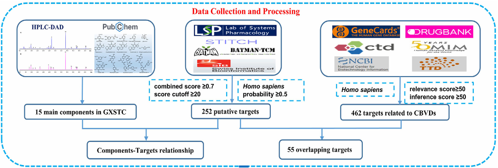 脑血管疾病(CBVDs)是全球范围内导致死亡和致残的主要原因之一。现有的治疗手段,不能满足患者需求。冠心舒通胶囊(GXSTC)结合蒙药和传统草药成分,在治疗脑血管疾病方面显示出显著疗效。然而,其有效成分及潜在作用机制尚不清楚。本研究通过系统药理学和实验评估相结合,揭示GXSTC在治疗脑血管疾病中的多靶点机制,为临床应用提供理论依据。