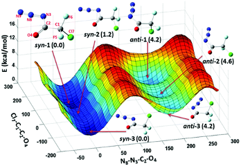 2D势能面扫描 3D势能面扫描 氯二氟乙酰氮杂烯(F2ClCC(O)N3)关键二面角的势能面扫描【1】